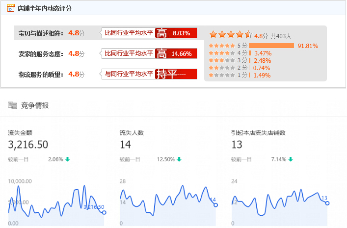 该店铺为3C数码类目,店铺的DSR都在4.8,信誉等级是五个钻。